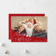 design moderno de natal vermelho alegre com imagem personalizada e script branco.