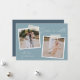 Adicione elegância casual aos seus cartões de natal com estas belas cartas desenhadas para acomodar duas fotos quadradas. As fitas emprestam uma sensação legal de instantâneo a este design simples e elegante (nota: a fita é uma imagem impressa, e não um adesivo real afixado no produto). "Paz na Terra" aparece em um roteiro escrito à mão branca, com seu nome familiar e ano no canto inferior esquerdo.