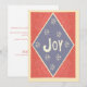 Compartilhe o espírito da época com este cartão de Natal plano, com um design ousado em forma de diamante na frente, com a palavra Joy em letras inspiradas retroativamente cercadas por flocos de neve. As costas incluem a sua mensagem de feriado personalizada: Desejando-lhe uma temporada cheia de alegria e alegria! Que suas férias brilhem com momentos de amor, riso e felicidade. Feliz Natal e um feliz Ano Novo! Uma maneira simples e festiva de enviar desejos calorosos a amigos, familiares e colegas de trabalho.