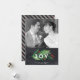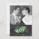 Um moderno cartão com fotos Natal/Feriado com verde festivo e bagas, e o texto tipográfico "Alegria". Um lado inverso coordenado com listras e bagas. Fácil de editar ou excluir o campo de texto na frente para atender às suas necessidades pessoais e mudar a foto para a sua. Os adesivos correspondentes e as etiquetas de endereço estão disponíveis, visite o meu compro.