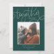Um cartão de foto de férias simples e sincero que coloca sua foto quadrada em um rico fundo verde caçador com uma mensagem doce. "Juntos é o nosso lugar favorito" aparece em letra cursiva esbranquiçada e letras maiúsculas, com seu cumprimento de férias personalizado, nome da família e o ano abaixo. Uma escolha simples e elegante para seus cartões de Natal de 2021.