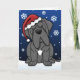 Mande Cartões de Natal napolitanos para todos os seus amigos carinhosos este ano! Um bonito desenho animado de cão kawaii se senta sobre neve recém-caída vestindo um boné Papai noel, enquanto os flocos de neve deslizam suavemente ao seu redor. A dentro também tem flocos de neve e diz: "Feliz Feriados!" Você pode personalizar o texto para qualquer mensagem.