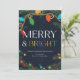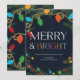 Envie alegria festiva com este cartão de Natal "Alegres e Brilhantes", adornado com luzes de Natal vibrantes e uma grinalda verde exuberante. Perfeito para compartilhar votos calorosos com familiares e amigos.