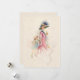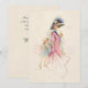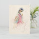 Bonito mãe vitoriana de vestido azul e capuz sentada sorrindo para sua filha enquanto comprava. Este adorável estudo é pintado no estilo de aquarela pastel. A parte traseira apresenta mensagem editável e gráfico floral opcional com fundo complementar personalizado.