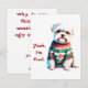 Sim, ele é legal. Legal demais para se importar. Só que talvez ele se importe um pouco, especialmente por estar enfiado nesta moda falso festiva. Este maltês adoravelmente descontente está aqui para espalhar alegria de férias com o máximo de julgamento. A dentro diz: "Por que você acha que eu estou vestindo este Suéter Feio?" Perfeito para amantes de cachorros que apreciam seus cartões de Natal com um traço de asas e um borrão de chão. Inclui envelope correspondente. Além disso, qualquer produto com temática animal vendido do compro Paws Charming nos ajuda a fazer uma doação para instituições de caridade animal — então você está devolvendo enquanto dava risos. Obrigados de apoio a vibrações pedosas e furbolas festivas!