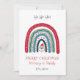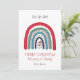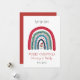 Um cartão de Natal bonito e caprichoso para mamães e pais do bebê, com Papai Noel e arco-íris de Natal. Adicione o nome do seu bebê. Vermelho sólido na parte traseira da placa.