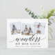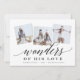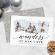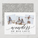 Elegante cartão com fotos de feriado apresenta três fotos quadradas em um layout de colagem, com "maravilhas de seu amor" sobrepostas em roteiro preto e letra de bloco. Personalize com o(s) seu(s) nome(s) e o ano abaixo. Cartões invertendo para um fundo botânico neutro e padronizado. Uma escolha moderna e minimalista impressa no estoque de papelão branco nítido com letra preta.