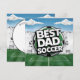 Melhor cartão de Natal do papai grafite de futebol. O design tem grafite moderno manuscrito preto pingando com bola de futebol no estádio. Ótimo presente para um pai ativo e esportivo que ama futebol e rugby. você pode adicionar o nome do seu pai é uma ideia perfeita para fazer um presente personalizado único para o seu pai, avô, marido.