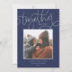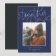 Um simples e sincero cartão com fotos de férias que coloca sua foto quadrada em um rico fundo azul escuro com uma doce mensagem. "Juntos é o nosso lugar favorito" aparece em um script off-white e em caracteres de bloco, com seu cartões de natal personalizado, nome da família e o ano abaixo. Uma escolha simples e elegante para seus cartões de Natal 2021.