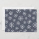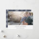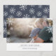 O cartão com fotos moderno, simples e mínimo do feriado caracteriza seu horizontal favorito ou ajardina a foto orientada com uma beira inferior branca grossa. Seu cumprimento feito sob encomenda aparece na rotulação azul da meia-noite moderna (mostrada com "Hanukkah feliz"), com seus nome de família ou nomes abaixo. Um teste padrão subtil do floco de neve é coberto sobre as bordas de sua foto para a apelação festiva. Os cartões invertem a um teste padrão invernal do floco de neve em combinar azul e branco da meia-noite.