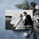 Compartilhe seu amor com estilo com este elegante e moderno cartão com fotos de férias! A frente da placa apresenta uma sobreposição "Merrily Ever After" e a parte de trás tem sua mensagem de feriado personalizada. O texto e as cores podem ser alterados. Design ©Rosalind Moore. Substitua a foto de exemplo por sua.