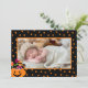 Avós, assim como outros familiares e amigos adorarão ver a última foto do seu bebê. Um cartão com fotos de Halloween é uma forma excelente de manter contato e compartilhar suas notícias. Este cartão com fotos de Halloween mostra uma foto do seu bebê na frente com uma estreita estrutura laranja ao redor da foto. Não se preocupe, eu montei o modelo para que sua foto se ajustado perfeitamente e facilmente. O quadro preto tem pequenos corações cor de laranja bonitos nele. Uma pequena abóbora cheia de doces decora parte inferior esquerda. O nome do seu bebê, Meu Primeiro Halloween e o ano estão nas costas. Este cartão é perfeito para enquadramento. Não se surpreenda se você o vir em uma mesa de café ou manto. Envie-me uma mensagem (sou Nellie) se precisar de ajuda para encontrar alguma coisa coordenadora.
