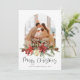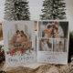 Este cartão de feriado apresenta uma bela fonte de caligrafia emparelhada com uma simples fonte sans serif. Este maravilhoso e moderno cartão de Natal mínimo permite que três seções separadas façam o upload de suas próprias fotos perfeitas para a fonte. Há também uma opção de adicionar uma foto de solteiro à parte traseira da placa.