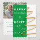 A saudação da época de Natal está perto. Hora de se reunir durante este feliz feriado, envie desejos amorosos de Natal para o seu amado. Compartilhe seu momento alegre com amigos e família com cartão de saudações de estação. Que seu dia seja feliz e brilhante nesta ocasião. Sobre a Design:- Cartão frontal: fundo; combinação de duas cores de tom de verde e branco, texto tipográfico projetado em branco e trabalho de arte de árvore de Natal é na moda dourado. Placa inversa: fundo branco, design de texto é verde. O marcador de posição da imagem é fornecido para uma foto de solteiro. Os espaços reservados de texto são fornecidos para mensagens e saudações editáveis. Nota importante: a foto de exemplo não está à venda, substitua-a pela sua própria foto.