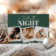 Holiday humor, Não Tão Silent Night, cartão com fotos festivo de caçador verde de férias. Recursos da placa, 3 fotos em quadros de estilo polaroide. A parte traseira da carta é complementada com uma moldura de ponto de neve de rabisco branco no fundo verde correspondente. espaços de modelo para mensagens e nomes.
