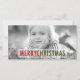 Cartão com fotos de Natal moderno com cobertura de texto vermelho e verde em negrito. ELKE CLARKE © Versatile design com as palavras "Feliz Natal" em vermelho e verde. Adicione sua foto, seu nome e ano, em uma fonte de texto retrô e simples de tipografia, e envie para a família e amigos para os feriados.