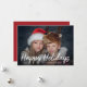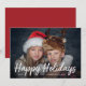 Este cartão de Natal moderno e vibrante apresenta sua foto pessoal na frente, com uma sobreposição de texto branco na moda e uma cor vermelha rica no verso.