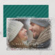 O design moderno apresenta um layout de foto sangrando o cheio com uma borda de neve e uma saudação clássica de Feliz Natal. O backer inclui um padrão e uma sala de distribuição diagonalmente sutis para incluir uma mensagem personalizada ou fotos adicionais.