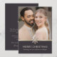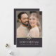 Celebre o seu primeiro Natal como recém-casados com o nosso "Primeiro Cartão de Natal Elegante para Newlyweds". A frente mostra uma foto cativante de vocês dois em sua roupa de casamento, irradiando amor e alegria. Uma faixa escura adornada com as palavras "Feliz Natal" e texto personalizável cria um pano de fundo elegante contra o interior claro. As costas apresentam um fundo escuro com espaço para a sua mensagem de Natal sincera. Compartilhe seu amor e felicidade durante esta estação especial com este cartão de Natal plano, maravilhosamente projetado, perfeito para espalhar alegria de férias.