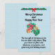 O nosso Cartão de Férias de Natal Apresenta uma imagem de um monte de presentes colocados contra um fundo azul claro com os motivos das árvores de Natal. Todo texto também é personalizável.