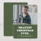 O Natal Mais ou Menos Engraçado de Sempre - uma maneira engraçada e apropriada de dizer isso este ano. Se não foi alegre ou feliz ou jovial, essa é uma maneira leve de tratar o ano que você teve. Você sabe, 2020 e tal. Um tipo simples e negrito em um fundo verde torna a mensagem muito direta, junto com uma única foto e um verso pontilhado.