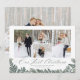 Celebre seu primeiro Natal como recém-casados com este elegante cartão de feriado com 4 fotos, juntamente com a frase "Nosso Primeiro Natal", acentuado com o verde desenhado à mão. Anúncio perfeito de casamento no Natal para compartilhar suas fotos e cartões de natal!
