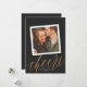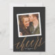 Este cartão com fotos moderno, mas elegante, do ano novo apresenta um grande roteiro "anima" em cor ouro sobre um fundo quase negro com uma foto quadrada de solteiro. Sobre a foto está uma imagem falsa de fotograma - design real não é 3D. Na parte de trás da carta está a mesma cor escura. **TODAS as cores são personalizáveis - cor de fundo, cor do texto, até mesmo cor do script de caligrafia! Basta clicar em "personalizar design mais" no menu suspenso.**
