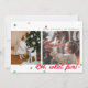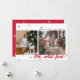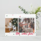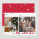 Cartão de foto de férias moderno e minimalista com dois espaços para fotos desalinhados com confetes em cores de Natal (tons de vermelho e verde) espalhados pela parte superior e inferior. A frase "OH, que diversão!" está em negrito no canto inferior esquerdo. O canto superior direito tem uma caixa de texto editável para sua própria mensagem de Natal, nome e ano. A frente do cartão tem um fundo branco. A parte de trás do cartão tem um fundo vermelho com mais confetes espalhados.