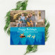 Papais noeis bonitos e brancos Cartões de foto de Natal da Cena de inverno com Papai Noel e sua rena passando por uma floresta azul de vitória em uma noite estrelada. Fácil de personalizar, basta adicionar sua própria foto e uma saudação pessoal nos campos de texto fornecidos. Clique no botão "Personalizar a TI" para encontrar mais opções de personalização. Fotografia © Storytree Studios, Stanford, CA