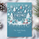 papais noeis de Natal 3D Saudando o Cartão de Férias com uma imagem brilhante do Papai Noel com pinheiro, flocos de neve e caixas decoradas de presentes. Personalize o cartão com sua saudação personalizada, seu nome de família e ano para um toque pessoal. A parte de trás do cartão mostra sua mensagem sincera.