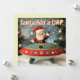 Um cartão de Natal de Papais noeis caprichosos e divertidos, com Papais noeis e um OVNI / UAP. A frente diz: Papais noeis têm um UAP. As costas dizem: Feliz Natal! Esta é uma placa plana, de dois lados, com espaço para escrever a sua mensagem no verso.