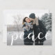 Cartão com fotos de feriado simples e elegante permite que sua foto favorita tire o palco central. O design Chic apresenta uma foto horizontal ou orientada a paisagem com cheio, com "peace" sobreposta em caracteres brancos. Personalize com seus nomes ou nome da família e o ano. Cartões invertidos para um padrão de xadrez de tartan vermelho e verde.