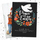 Um bonito cartão de Natal com uma pomba em coroa floral com as palavras paz na Terra. O cartão de Natal é desenhado a preto, branco e vermelho. Personalize-o com o seu nome, o ano e a sua foto de família no verso do cartão. Projetado para você pelo Blackberry Boulevard.