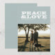 Paz e amor. Este cartão de feriado com uma foto apresenta uma saudação retrorada, mas sempre relevante. O esquema de cor azul clara e os cantos arredondados lhe dão ainda mais uma sensação de safra.