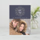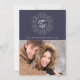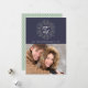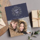 A moderna design de cartão de Natal inspirada na natureza apresenta "paz na Terra" em letras escritas à mão, rodadas por uma ilustração feita à mão, em branco, verde-sábio e linho, num fundo azul-da-meia-noite rico e elegante. Adicione sua foto favorita e personalize com seu nome de família e o ano. Para ajustar o espaçamento de saudação, nome e ano, use a função "Personalizar" para mover elementos. Uma escolha única e elegante para seus cartões de natal!