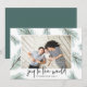Um design de cartão de feriado moderno e elegante com sua paisagem favorita orientada ou foto horizontal cercada por toques de pínus verde e verde de Natal. "Joy to the World" aparece por baixo em letras escritas à mão. Personalize com o seu nome de família na parte inferior.