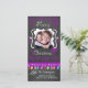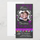 Feliz cartões com fotos de Natal com uma tela de fundo, muitos espirais roxos e texto que diz Feliz Natal, uma série de luzes coloridas em várias cores, ornamentos roxos pendurados, e áreas que você pode personalizar esses belos e brilhantes cartões com fotos de Natal com sua foto e seus nomes!