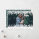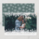 O design de cartão de feriado elegante apresenta a sua foto favorita horizontal ou orientada à paisagem, enquadrada no topo e no fundo por uma borda de ilustrações brancas em flocos de neve. Personalize com sua saudação personalizada, nomes e o ano abaixo. Cartões invertem para um padrão branco de floco de neve em verde de primavera.