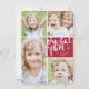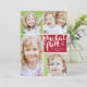 Um cartão com fotos moderno e divertido para o feriado com cartas à mão e 4 fotos.