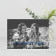 Este cartão festivo de natal com fotos de solteiro apresenta uma foto de solteiro de sangria de cheio com "oh que divertido" em um impressão de xadrez azul de búfalo com flocos brancos desenhados à mão sobre ele. A parte traseira da placa tem um padrão de xadrez de búfalo azul correspondente.