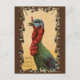 Este design, feito à mão, apresenta um peru assustado, e as palavras "Quem disse a Turquia", todas dentro de um quadro de penas de peru.