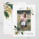Congratulo-me com o cartão de feriado de fotografia de solteiro floral. Os florais pintados à mão com texturas de tinta visíveis dão a este cartão de feriado uma sensação luxuosa. Em verdes clássicos, castanhos e amarelo ocre.