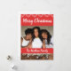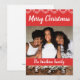 Cartão de Natal de família afro-americana. Adicione sua própria foto da família. Linda foto e fundo vermelho com galhos brancos de neve e enfeites de gelo.