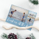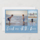 Colagem de fotos da família 3 "Rindo o caminho todo", cartão azul de Natal da praia. Personalizado com três das suas fotos favoritas, saudação e nome de família.