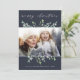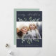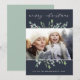 Festivo e elegante em tons de jade verde-claro, cinza e branco, nosso cartão com fotos de férias do Winter Sage apresenta sua foto favorita orientada para horizontal ou paisagem, formada por folhas botânicas verdes esboçadas em um fundo azul marinho dramático e profundo. O "Feliz Natal" aparece no topo da escrita de caligrafia moderna. Personalize com sua saudação personalizada, nome da família ou nomes e ano na parte inferior.
