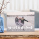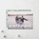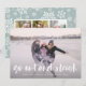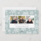 O cartão com fotos de feriado festivo apresenta sua foto favorita horizontal ou orientada à paisagem em cheio sangrando, com "saia e trenó" sobreposto em tipografia branca de pincel com letra branca. Personalize a frente do cartão com seus nomes e mensagens de feriado curtas, e adicione três fotos adicionais no verso em um layout de colagem em um fundo com padrão de floco de neve verde-claro, juntamente com uma mensagem pessoal personalizada. Para um vazio de volta, simplesmente exclua os modelos de fotos e a camada branca matte.