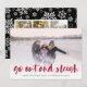 O cartão com fotos festivo apresenta sua foto favorita horizontal ou orientada à paisagem em cheio sangrando, com "saia e trenó" sobreposto em vibrante tipografia vermelha de pincel com letra vermelha para um visual moderno e jovem. Personalize a frente do cartão com seus nomes e mensagens de feriado curtas, e adicione três fotos adicionais no verso em um layout de colagem em um fundo padrão de floco de neve preto e branco, juntamente com uma mensagem pessoal personalizada. Para um vazio de volta, simplesmente exclua os modelos de fotos e a camada branca matte.