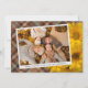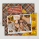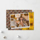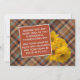 Cartão único, clássico, de moda, bonito e decorativo de Ação de Graças. Com espaço para personalizar ou personalizar com uma foto e nomes (ou nome da família) de sua escolha. Com flores de Mãe amarelas quentes e bonitinhas de queda amarelas na fazenda rústica inspiraram-se no padrão de xadrez tartan design. E um poema de saudação de estação personalizável na parte de trás do cartão.