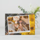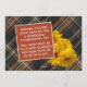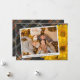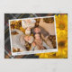 Cartão de Ação de Graças único, sofisticado, moderno, bonito e decorativo. Com espaço para personalizar ou personalizar com uma foto e nomes (ou nome da família) de sua escolha. Com lindas flores de Mums amarelas quentes de outono clássicas em um design de fundo xadrez tartã inspirado em fazenda rústica. E um poema de saudação de temporada personalizável no verso do cartão.