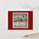 Cena de praia de inverno em estilo retrô encantador com cartão postal de Natal "Feliz Natal de Delaware" em fundo vermelho festivo.